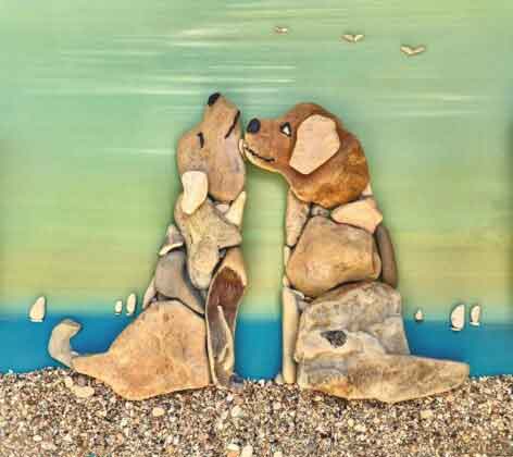 -Cosa rappresentano queste creazioni? “Apparentemente sono sassi senza forma di vari colori che, assemblati, diventano veri capolavori. Sono curati nei minimi dettagli, cerchiamo di dargli un’anima. Sassi che lasciano spazio all’immaginazione e alla poesia. Vengono raffigurate varie tematiche della vita, paesaggi, animali, personaggi…”. Come avviene la lavorazione?“Partendo da un’ispirazione, si cerca il sasso principale e poi quelli complementari, L’opera così inizia a prendere forma. Terminato il lavoro, i sassi vengono incollati su un fondo di legno precedentemente verniciato e trattati con finitura trasparente che dona brillantezza esaltandone la colorazione originale”.