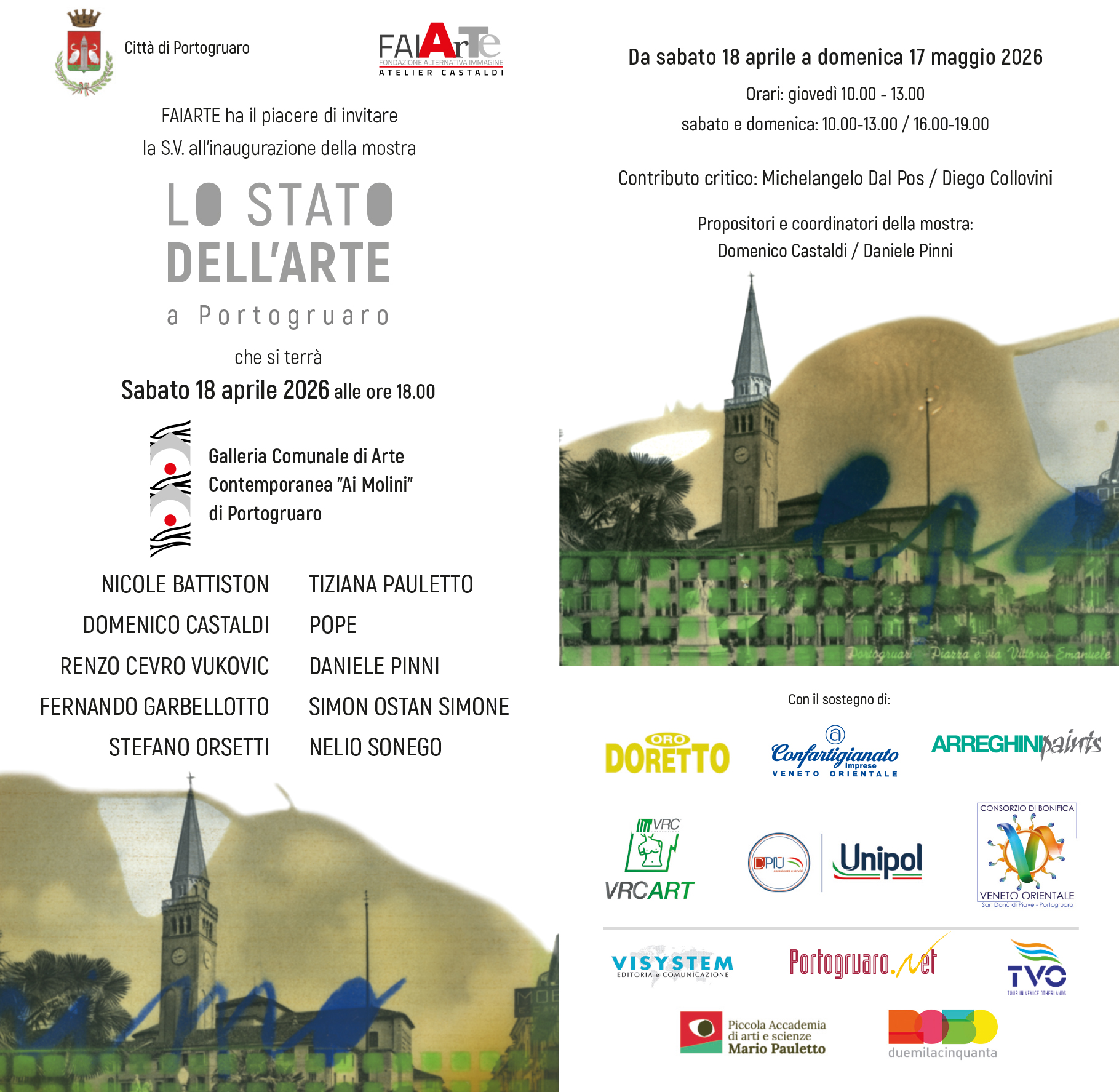 L'artista Tiziana Pauletto presente con le sue opere alla collettiva "Lo stato dell'arte a Portogruaro" inaugurazione sabato 18 aprile alle 18.00 galleria comunale Ai mulini di Portogruaro (VE). 18 aprile/17 maggio 2026.