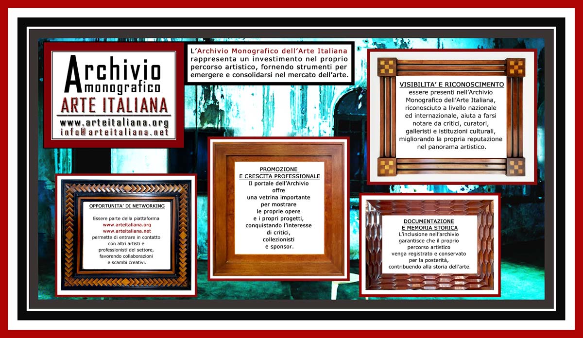 Un progetto innovativo per contribuire alla costruzione di una rete culturale solida che ha l’obiettivo di unire diversificati paesi attraverso l’arte. Un’iniziativa simbolica per alimentare la libertà e la partecipazione attraverso l’arte: un vantaggio di crescita e di contrasto alle differenze globali. Il PUBBLICO amplia la sua conoscenza visitando mostre in musei e gallerie, esplorando i social, studiando i capolavori internazionali del passato e del presente. L’archivio invita voi del PUBBLICO, che siete i grandi protagonisti dell’arte, a saper riconoscere i nuovi talenti, artisti di pregio, spesso non considerati, che mantengono viva la LIBERTA’ DI ESPRESSIONE. www.arteitaliana.org